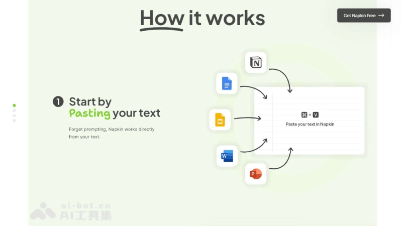 • 粘贴文本:在Napkin的编辑区域粘贴或输入你想要转换成视觉图像的文本内容。